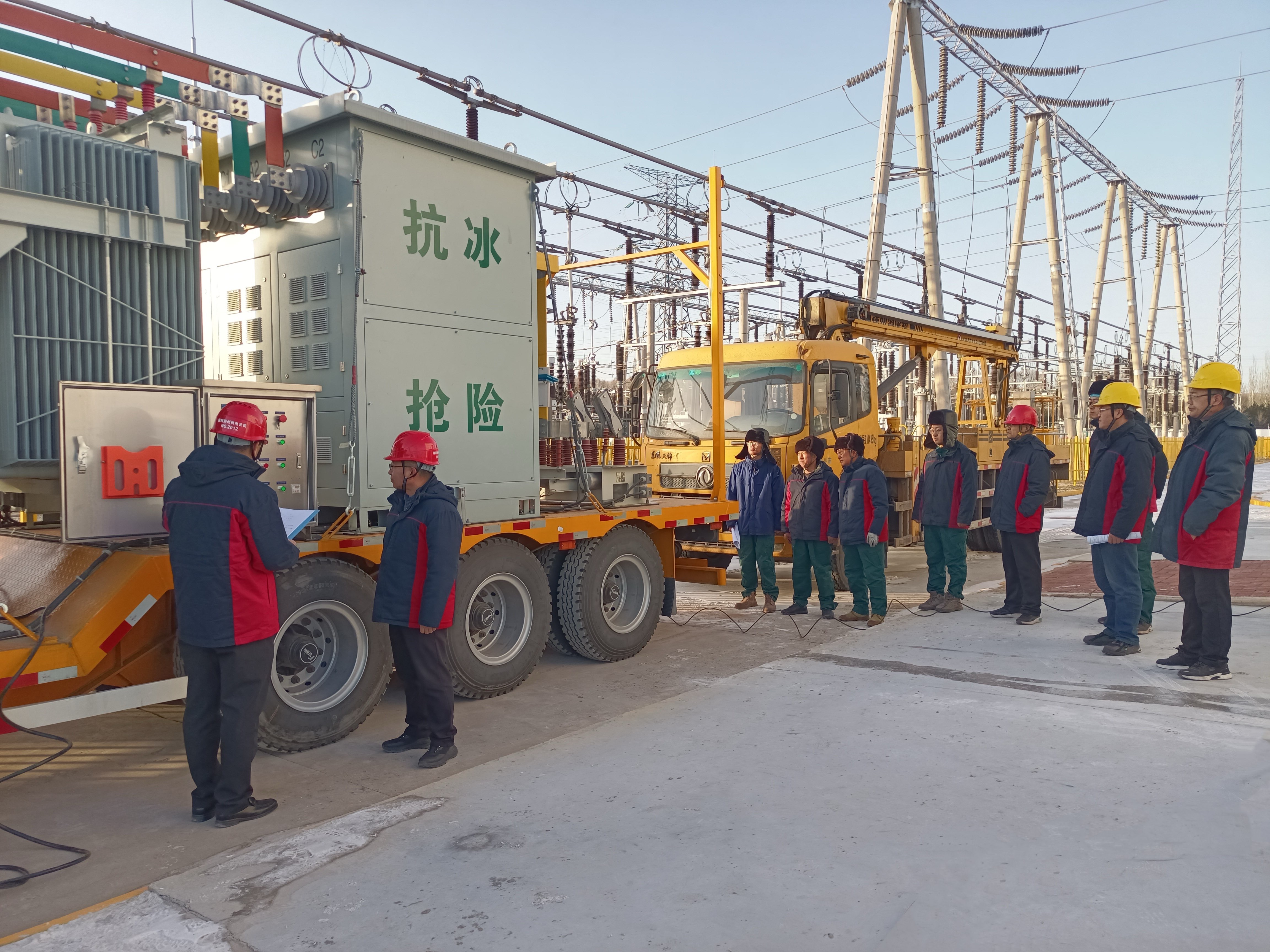 為積極應(yīng)對冬季寒潮天氣,保障電網(wǎng)安全穩(wěn)定運(yùn)行,11月27日,朔州供電公司在220千伏向陽堡變電站組織開展220千伏朔向I線移動式直流融冰實操演練。本次演練集結(jié)了調(diào)度、運(yùn)行、檢修、二次、輸電等各專業(yè)骨干力量共計20余人,旨在全面檢驗融冰方案的可行性與各專業(yè)隊伍的協(xié)同作戰(zhàn)能力,為冬季線路防冰抗冰工作打下堅實基礎(chǔ)。