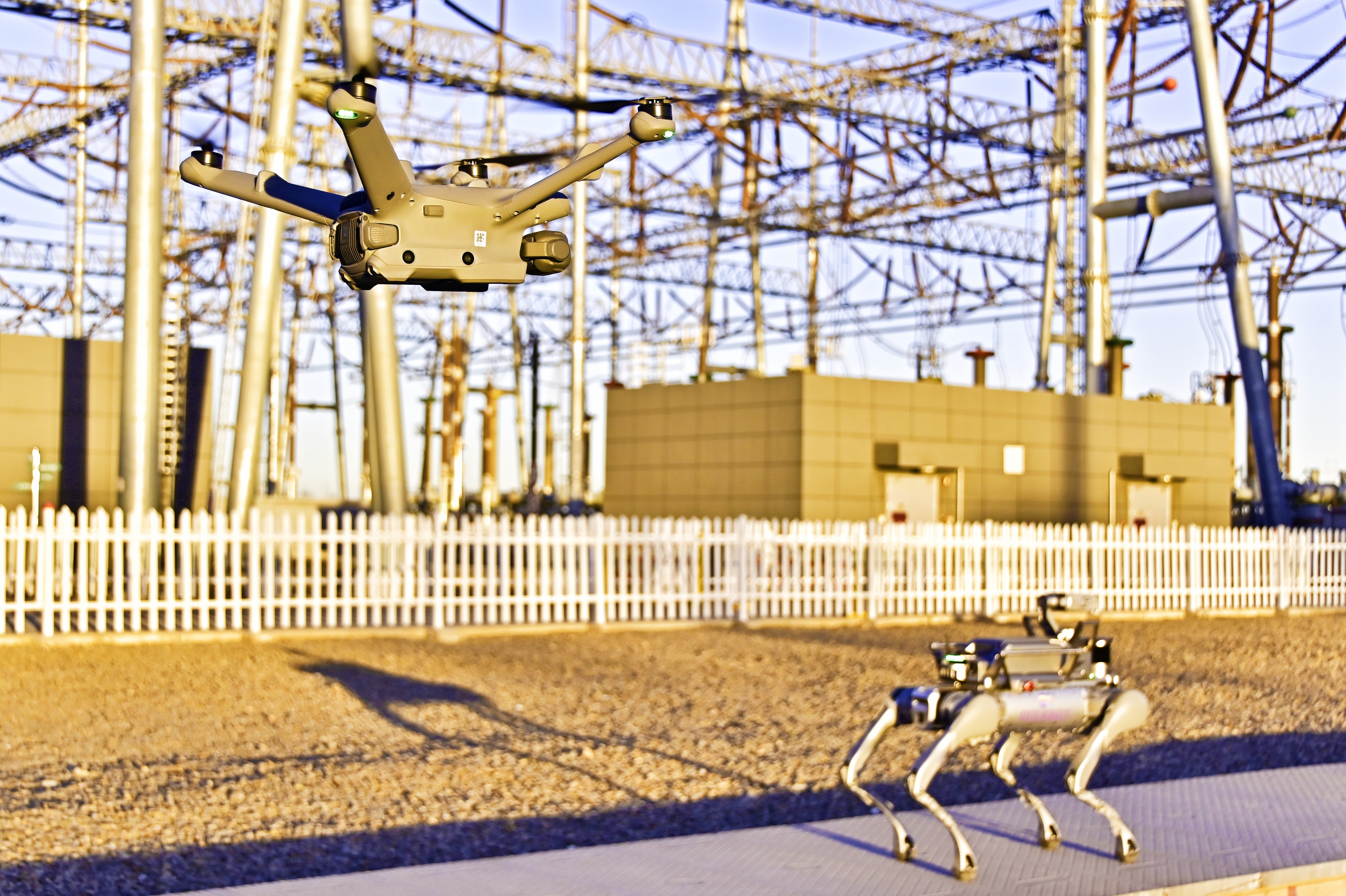 近日,國網(wǎng)大同供電公司在500千伏丁崖變電站實現(xiàn)全省首家立體智能巡檢。四足機器人、無人機自主巡檢和變電站智巡系統(tǒng),不僅降低巡檢人員的勞動強度和安全風險,還能在惡劣天氣條件下持續(xù)作業(yè),有效彌補了人工巡檢在時間和空間上的局限性,為變電站的安全穩(wěn)定運行提供了有力保障。